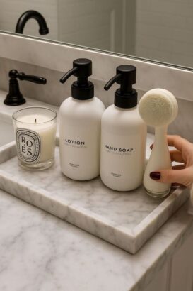 If you’d like to try this, this marble vanity tray is both stylish and practical. It’s durable, water-resistant, and adds a touch of elegance while keeping everything neatly in place.