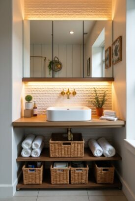 This small change is one of those bathroom organization ideas that makes a big impact on both the look and feel of the space. It proves that organization can be functional and beautiful at the same time.
