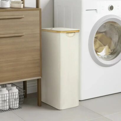 If you’d like to try it, this slim bathroom hamper is a great option. It’s discreet, holds plenty, and is easy to carry when it’s time to do laundry.