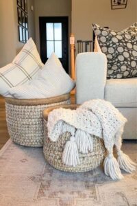 Throws: A chunky knit throw adds softness without feeling fussy.