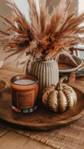 Scents are just as important as visuals when setting the mood. Fall is the perfect time for cinnamon, pumpkin spice, and vanilla fragrances.